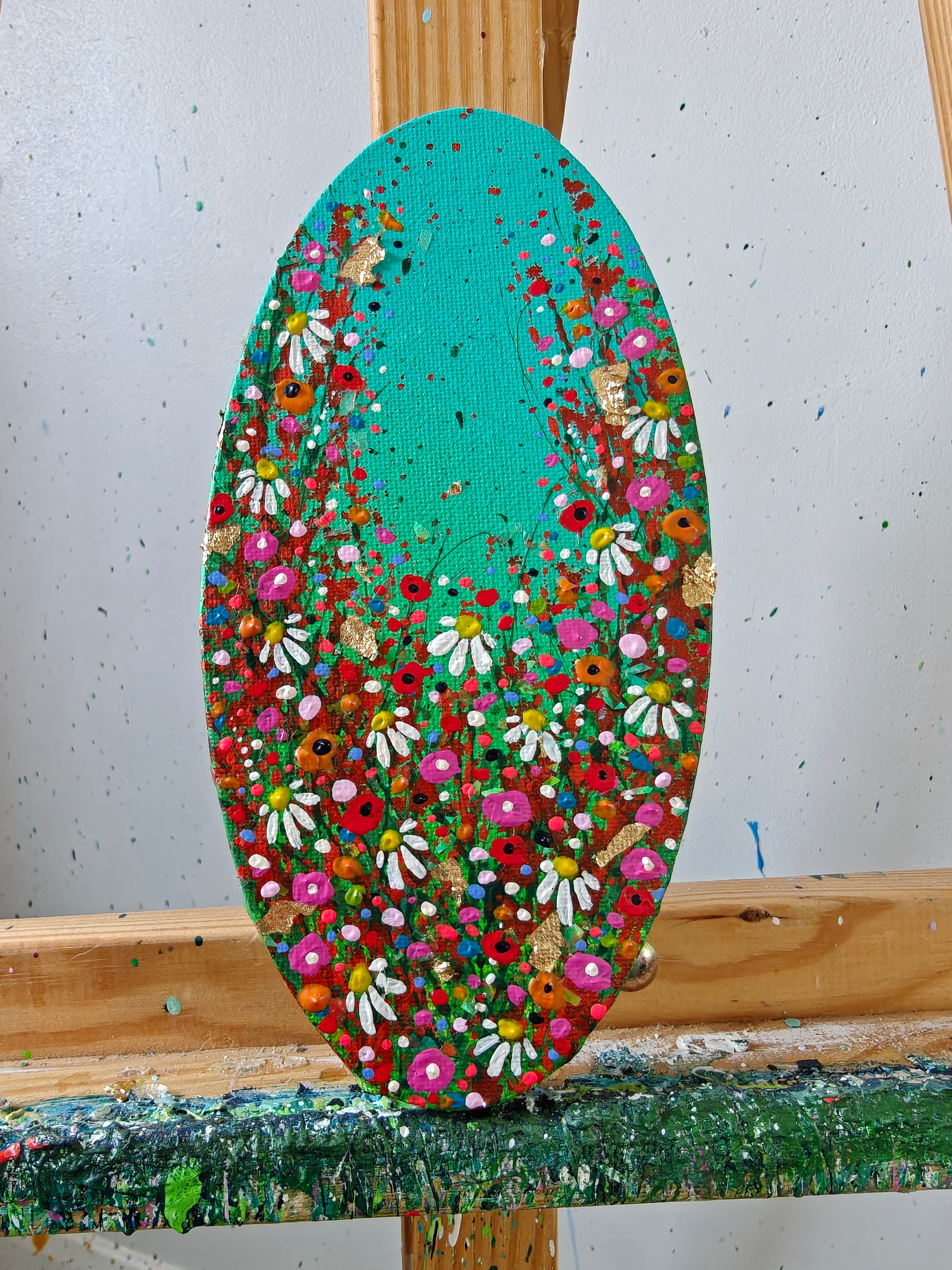 Acrylic, and embellishments on 4" x 8" canvas