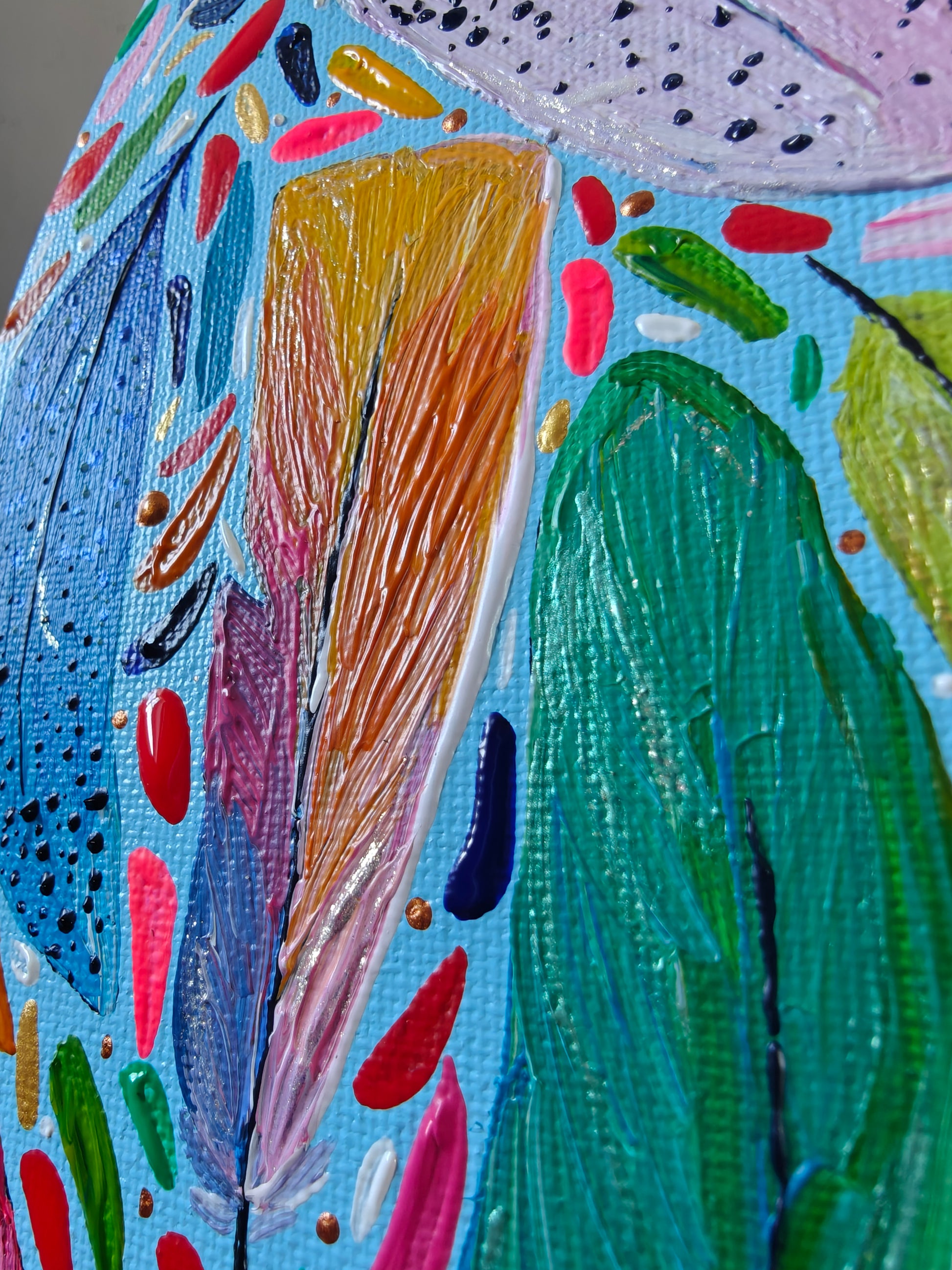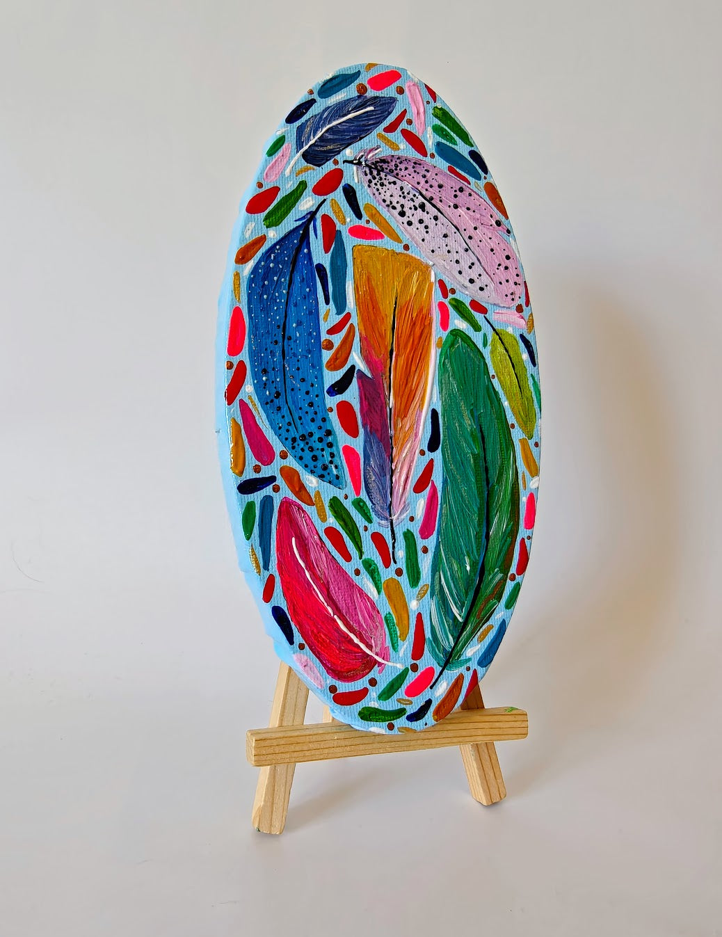 Acrylic, and shimmer feather study miniature on canvas ( 4 x 8")