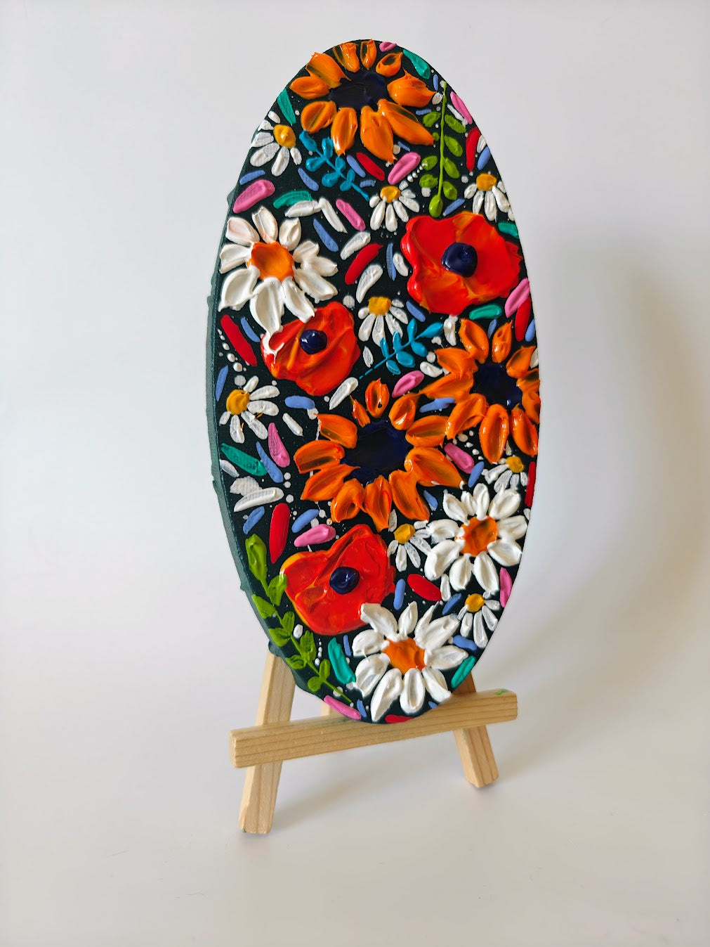 Acrylic, and shimmer feather study miniature on canvas ( 4 x 8")